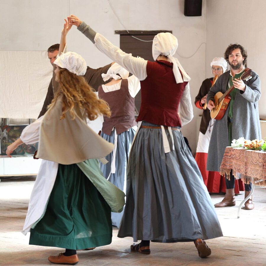 De diverse historische figuren van jong tot oud ‘bewonen’ het kasteel, je waant je helemaal terug in het verre verleden. Wie weet kun je meedoen met een dansje…