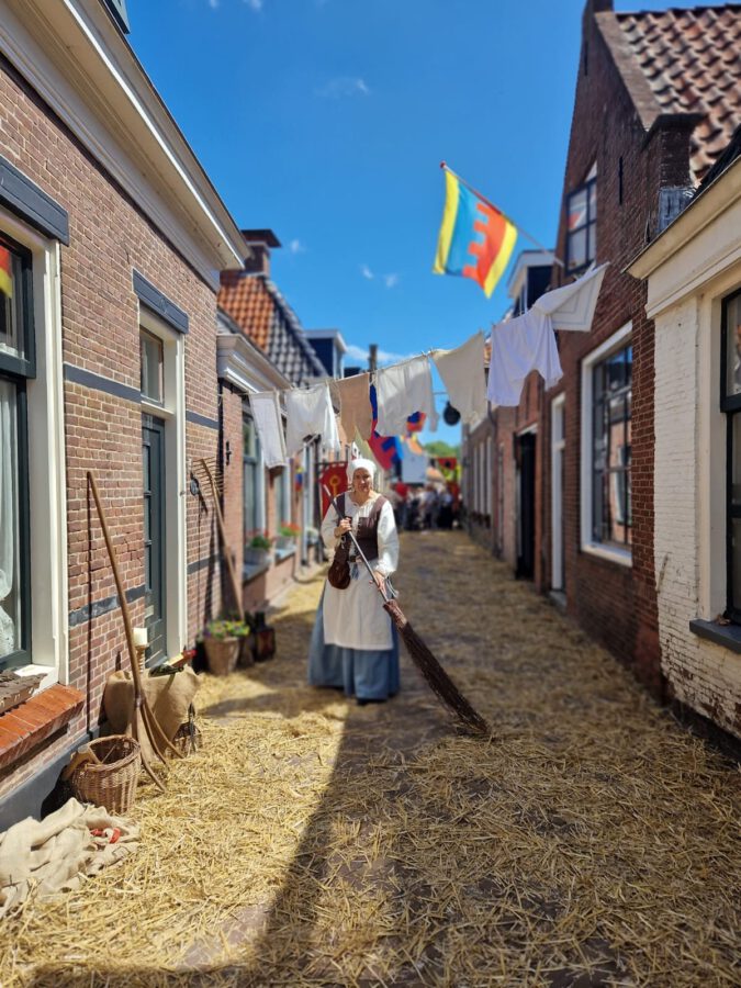 Ook Levende Historie Harderwijk zal in de straten van Sloten rondlopen om hier en daar wat te vegen of een praatje te maken.